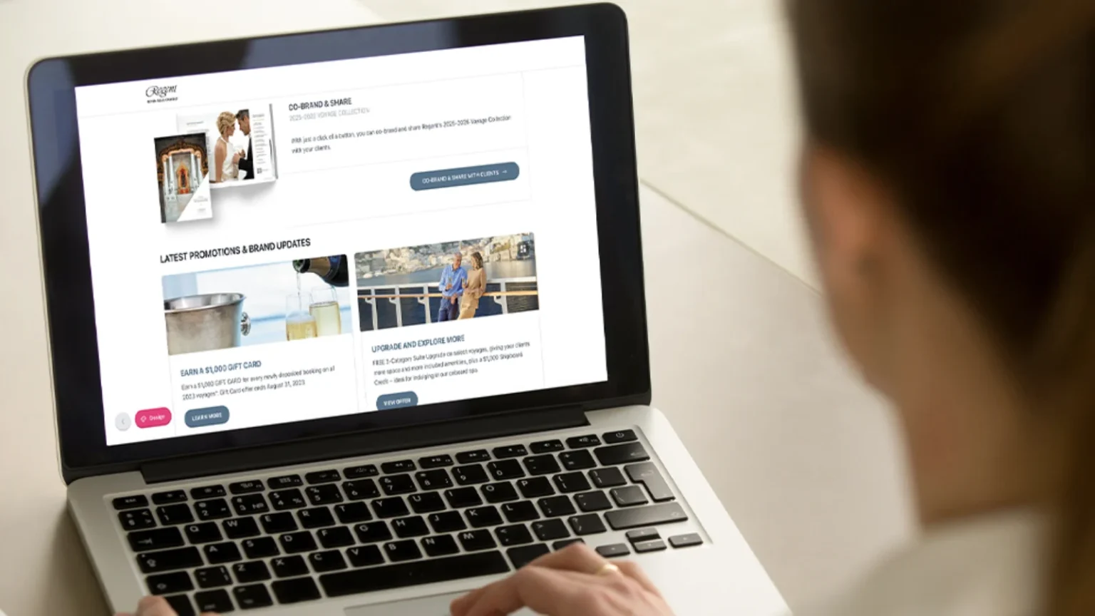 Additionally, a dynamically co-branded Regent website is available, featuring real-time access to cruise availability and pricing information, which simplifies the conversion process and elevates the overall client journey.