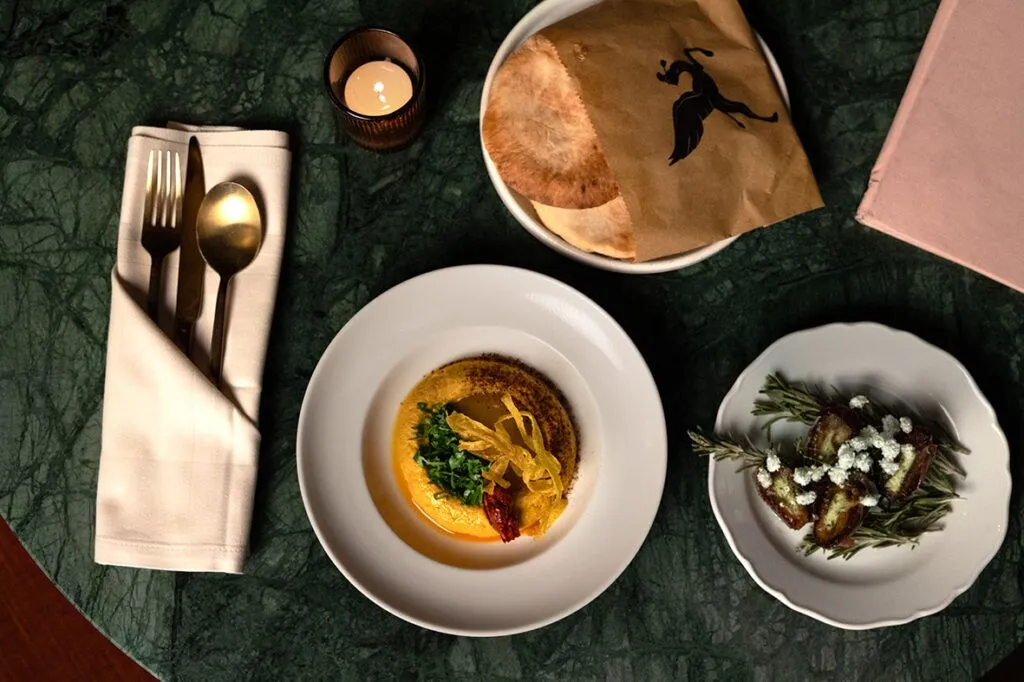 The generous sharing menus from Chef Patron Eran Tibi are packed with seasonal flavour to celebrate winter’s finest ingredients. The menus see starters such as Dates in Blankets wrapped in Parma ham with Rosary goats’ cheese, followed by Clementine Cured Salmon; Carrot Hummus; and Twisted Jerusalem Bagel. For mains, The Roast takes centre stage in all menus,a picanha beef with redcurrant and Madeira sticky jus served with Cauliflower Crumble with grape molasses, chestnut crumble and fried cauliflower leaves; Smoked Pink Fir Potatoes with harissa butter and cranberry labneh; and a Market Salad of gem lettuce, pears, figs, crispy sprouts and pecorino. Non-meat eaters can opt for the Aubergine Roulade with spinach and seed pesto and pilpelchuma. To finish, Kapara’s cult Cheesecake is a festive dream filled with lemon curd, cranberry compote and a meringue cloud.